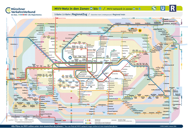 Das MVV-Gebiet ist für alle Fahrkartenangebote in Tarifzonen unterteilt: